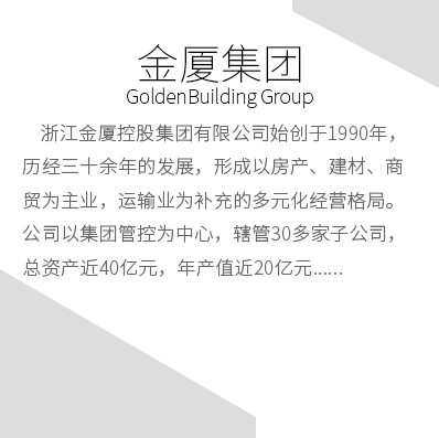 浙江金廈控股集團有限公司(簡稱“金廈集團”)始創于1990年,歷經30多年的穩健發展,逐步形成了以建材、房產、商貿為主業的多元化集團公司。公司注冊資本2億元,現有員工近1000名。金廈集團具有良好的行業品牌影響力與社會美譽度,近5年來,集團年產值超20億元,連續多年成為金華納稅50強企業,特別是2023年度金廈系為各級政府貢獻稅收超2.4億元。